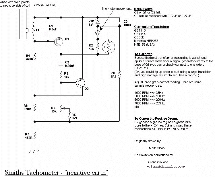 First, read the front of the tachometer. If it IS marked "Negative Earth" it probably IS negative earth already. But then, you probably wouldn't be swapping your car's electrical system, and wouldn't be reading this. If it is marked "Positive Earth", and there are no other labels on the back housing (notice this after removal of the tachometer from the instrument panel) indicating that it has been changed over, follow these instructions.
