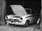 Tim Reed, a friend from Massachusetts, drove up to Hillsboro in late February 2000 to give me an estimate on the MKII body restoration. After walking around the swiss-cheese-like primered body, he decided he did NOT want to tackle the MKII. But... he looked over at the MKI with interest. He sighted the roof. He felt it. He stood back, and squinted. He measured it. "Its not that bad." "Its really not that bad." He ran his hands over the wrinkles again. He thought that it would be a challenge to him, and was willing to straighten and push to see what he could do. I wanted to re-do just the roof, to the trunk line, to the front cowl. Even though the rest of the car needed some attention as well (dent in the hood, off-side front fender and passenger door dents) I did not want to invest a lot into the body, not knowing if the roof was repairable. Tim agreed to re-do just the roof in the correct original Ermine White, leaving the rest alone. If the roof came out all right, well, then we could look into doing the rest of the body.