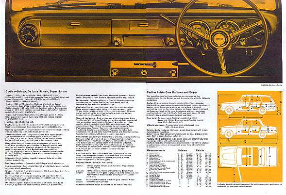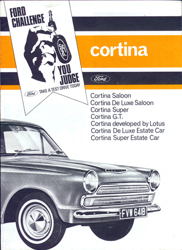 This is an 8-page 9.75 inch x 7 inch fold out sales brochure/poster, published by Ford of Britain, Car Advertising Department, Ref. number WOO6785/10/64. I believe it was distributed in late 1964 or early 1965 for the introduction of the airflow Cortina. There is one short paragraph about the "Cortina developed by Lotus", but that is all. And no mention at all in the specifications section. The brochure is hard to find, and is available only through collectors.