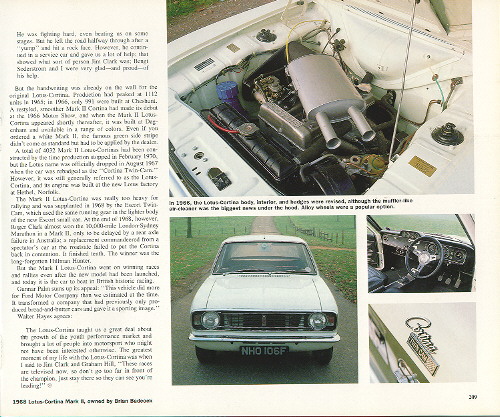 Autombile Quarterly a subsidiary of Kutztown Publishing Company, Inc. 420 N. Park Road, Wyomissing, Pennsylvania 19610, publishes a series of hardcover landscape-format beautifully illustrated books on various classic cars. Volume 28 number 2, published in 1990 has a wonderful section on the Lotus Cortina, pages 192-208. 32 photographs, both black & white and color illustrate the well-written text by David Burgess White.