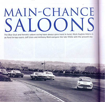Lotus Cortinas are mentioned in text and shown in black and white photographs, from pages 50-53 in the chapter titled "Main-Chance Saloons", and again in the 2-page "50 Ford Facts & Go-Figures!" found at the back of the magazine. That's about it. But I liked the chapter on the Cosworth V-8, and of the "Them & Us" chapter, that probably should have been titled "Them Vs. Us", about the Ferrari-Ford rivalry that produced the Ford GT MKIV.