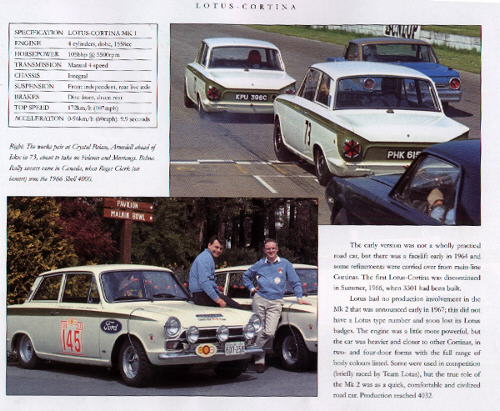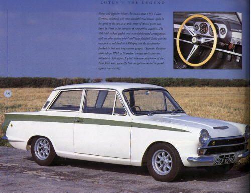 This large full-color, glossy landscape format book by David Hodges, was published by Parragon Book of Bristol, England in 1997 ISBN # 0-75252-074-1. It contains 80 pages, mostly color photographs, with sections of Lotus models from the Lotus MkVI, to the Lotus Elise, with 4 pages devoted to the Lotus Cortina. VERY nice pictures!