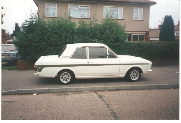 Now circa 1989 or '90 I drives down to England to see a mk1 RS 1600 Escort. Nice, I'd let the guy know later. On the way home ,I buys a motor mag at a petrol station. There is the cortina CLD, for sale in Edinburgh, 10 miles from my own house. I stopped and looked- deal done. New Lotus for Josie boy, me. Factory black through-out, nice. Time elapses, no job, CLD must pay the mortgage. 2 WISE GUYS from the west of town arrive in a not-bad-but-not-great Lotus mk2 (white and green). They buys the black CLD from me.