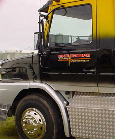 "Transporter belonging to the Classic Car Club from Western Australia, that carried about 6 member cars from across the continent! This car transporter from WA would have covered the equivalent width of the USA to get to the meeting but unlike in the US there are only truck stops on the way across the NULL ARBOR PLAIN. APROX 4500 KM of open desert. the Guys are very keen..." |