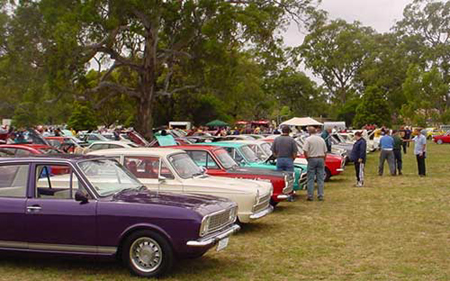 "About 30 Cortina MKI and MKIIs were in attendance at the Small Ford Day. The cars included MKI & MK11 in all forms, from original stock (driven by Mum to church only on Sunday) to fully worked powered-by-supercharged-Toyota, with every possible combination in between." |