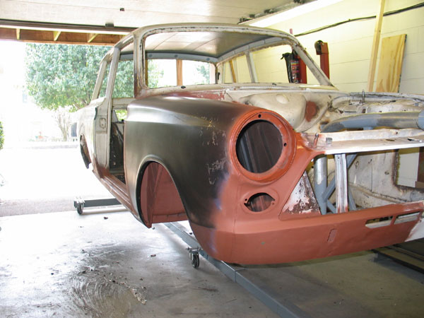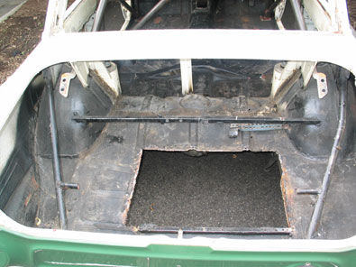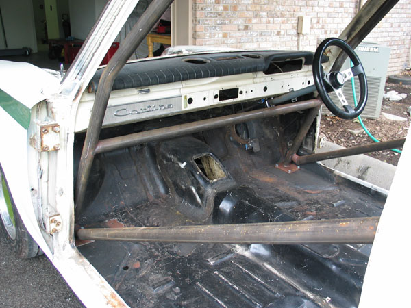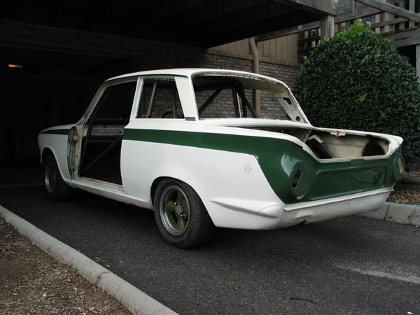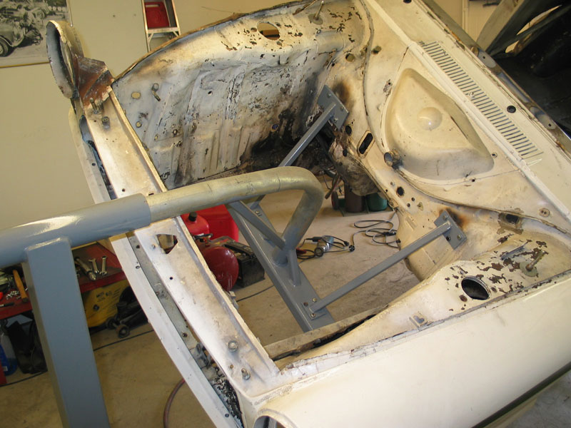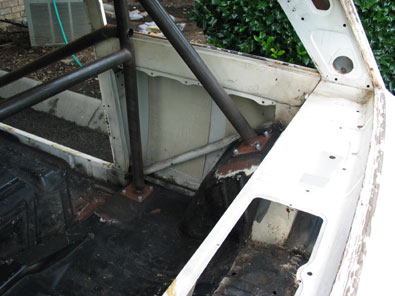 When we pulled the Bob Attrell-installed roll cage, to install a new cage, we discovered that it had had a different rear cage bolted in earlier in its life. So it possibly spent time as a club racer in the UK for a while.