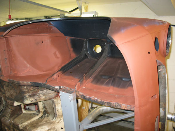 "Next on the bill is the inner and outer front wing - Oh boy ! Look at this hole (above the pedal area) in the top of the footwell ! My neighbors are getting a pool going - pick the year I'm going to finish................"