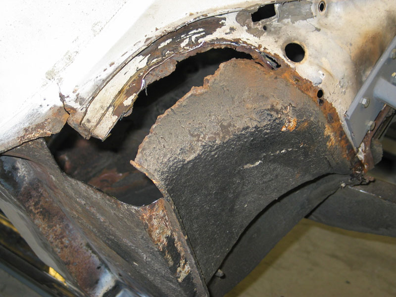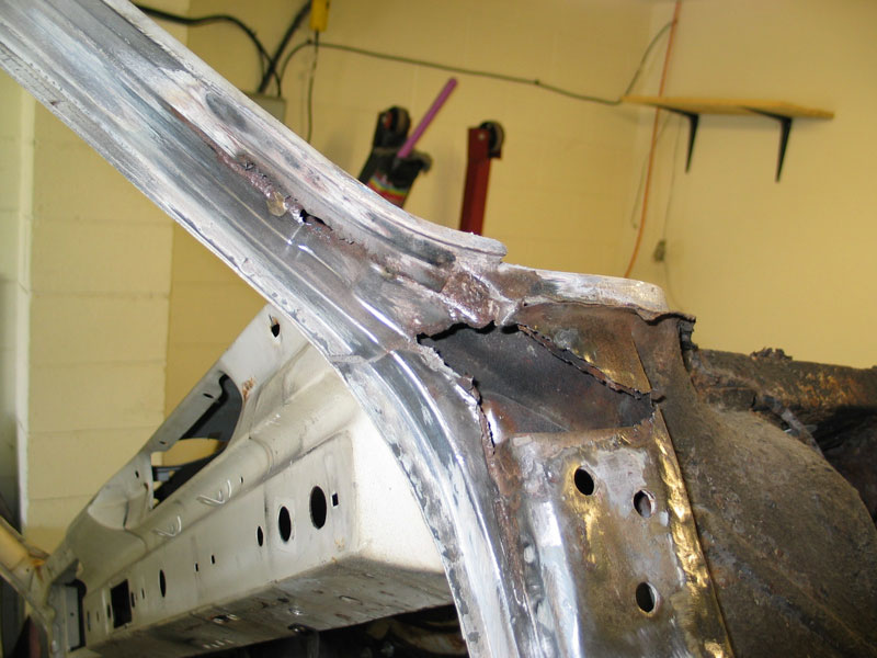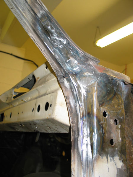 "The inner wing panel is considerably more important than any other on the car, and it is important to get it lined up right, and to make it as solid as possible between the chassis rail and the bulkhead. Despite what people say about the possibility of mis-alignment of the inner wing, (remembering that the strut hangs off this item), you really would have to try hard to misalign it. This again assumes that the car has not suffered front end damage, which would be immediately obvious when the new panel is lined up to the chassis / bulkhead - if the Chassis rail doesn't line up, then something is bent."