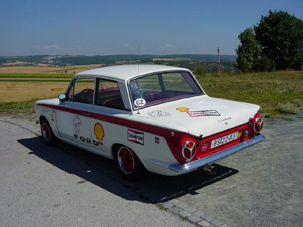 His dream was to make car like a sport Lotus Cortina. But I told him, that white colour with red is better than green, isnīt it? We decided to make white-red. Reparation spent over 4 months. Engine is from Ford Sierra, type OHC with 105 Ps, brake and control unit from Ford Escort and many others. Cortina is able to going over 200 km/h!!! We want to show off to you, to the England, the seat of Cortinas and ask to add our photos to your site.