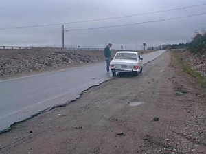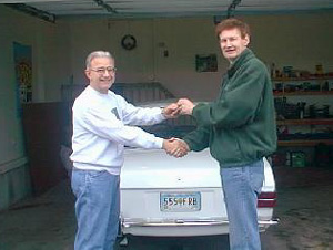 On April 24th, 2000, after 28 years of ownership Binnie hands the keys to Steve Miller of South Carolina. After meeting Steve, I know now that the car could not have found a nicer home. On a damp and cool Nova Scotia morning, Steve set out at 9 am on his 2200 mile journey to South Carolina. He arrived safely home 3 days later. I have asked Steve to write a bit of a journal on his trip home with the car. As soon as that is available, I will post it here.